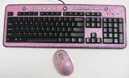 | BRAND NEW, LIMITED EDITION, PINK Crystal Rhinestone Keyboard and Mouse makes you the envy of all your friends with awesome sparkle. You can use this keyboard and mouse with your laptop or desktop computer. All you need is USB inputs. Just plug the USB cords into the USB inputs and you are ready to go. This Crystal Rhinestone keyboard has browsing and multimedia button on it. Designed for a Microsoft Windows computer, but it will work with any Apple Macintosh or Linux computer/laptop.This Crystal Rhinestone mouse has a left and right button and also a scroll wheel on it. When you plug this corded mouse in, it will light up with a blue and red LED lights.They are compatible with any desktop computer or laptop that has USB inputs. Details:* Rare and Hard to Find items* Mouse Lights up with bright LED colors when in use * Looks even better in person* Hand Made ...Read more